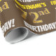 Ce papier d’emballage comporte un message comme "FIRSTNAME’S 72nd BIRTHDAY!", avec le "72nd" ayant une apparence de couleur fausse/imitation or, et avec le nom et "BIRTHDAY" dans une police amusante et audacieuse. Le nom peut être customisé, et l'arrière - plan est de couleur marron. Un papier comme celui-ci pourrait peut-être être utilisé pour envelopper les cadeaux d'anniversaire donnés à quelqu'un pour célébrer leur soixante-douzième anniversaire. [~Z0000211]