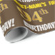 Ce papier d’emballage comporte un message comme "FIRST-NAME’S 94th BIRTHDAY!", avec le "94th" ayant une apparence de couleur fausse/imitation or, et avec le nom et "BIRTHDAY" dans une police amusante et audacieuse. Le nom est personnalisable et l'arrière - plan est marron. Un papier comme celui-ci pourrait peut-être être utilisé pour envelopper les cadeaux d'anniversaire donnés à quelqu'un pour célébrer son quatre-vingt-quatorzième anniversaire. [~Z0000211]