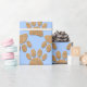 Empreinte de patte de chien de style dessin animé mignon avec texture burlap. Rouleaux papier d'emballage personnalisés.. Petit arrière - plan bleu. Tout ce qui est vu est imprimé, aucun burlap réel ne sera utilisé dans la fabrication de ce produit, idée d'enveloppement cadeau pour les amoureux de les chiens de tous âges.
