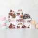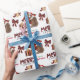 Le motif répété sur ce joli papier d'emballage de Noël est l'image d'un Chien Berger Australien rouge et blanc portant un chapeau de Père Noël, avec un coussin de buffle noir et rouge derrière lui, et un paquet cadeau coordonné avec un ruban d'or à côté de lui. Il y a aussi un arc en plaid de buffle et le texte correspondant qui dit "JOY". Stylisé rouge et noir buffle texte plaid dit MERRY CHRISTMAS", et votre propre signature est dans deux champs pour vous de customiser.