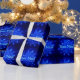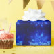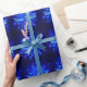 Un essaim de flocons de neige fractaux bleus. Le texte "Buon Natale" apparaît en bleu et blanc brillant.