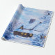 Papier Cadeau Cabine du paysage d'hiver bleu