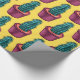 Drôle papier d'emballage de cactus avec un dessin d'encre de couleur numériquement représentant un plante de cactus dans une casserole remplie d'une étrange soupe alien rose. Ce design trippy amusant a une sensation psychédélique en raison de ses couleurs jaunes, vertes, roses et violettes bizarres.