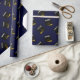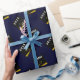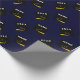 Papier cadeau de fin d'études unique avec casquette de diplômé noire et dorée sur fond bleu marine. Modifiez le texte pour ajouter le nom du diplômé et l'année de la promotion.