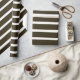 Motifs à bandes horizontales dans une palette de couleurs chaudes et neutres.