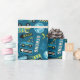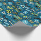Un Enveloppement Amusant Papier Motif De Camions De Construction, Et Des Signes Pour Anniversaires