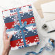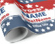 Papier d'emballage de campagne personnalisé en rouge, blanc et bleu avec étoiles.