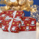 Papier d'emballage de Noël avec illustration de la tête d'un ours de panda mignon avec casquette Père Noël ; dessin animé de Noël pour les enfants ; dessin animé de Noël pour les enfants, sur arrière - plan rouge avec modèle texte personnalisable pour votre nom ou message ; illustré par Radka Kavalcova