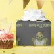 L'illustration originale de Destei d'un personnage zombie vert effrayant transformé en motif. Sous l'image il y a une zone de texte personnalisable qui se lit maintenant "Happy Halloween !". La couleur arrière - plan est gris foncé.