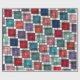 Ce papier d'emballage a un design art déco de carrés faits d'angles superposés dans des tons rétro de bleu et rose.