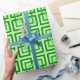 Papier Cadeau Carrés géométriques modernes, vert menthe et émera
