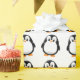 Un joli dessin de manchot noir et blanc. Papier d'emballage cadeau animal bébé. Version neige. Idée cadeau pour les enfants.