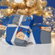 Un plombier de style dessin animé portant un réservoir d'eau. Cette conception semble vraiment efficace sur ces papiers d'enveloppement