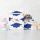 Casquette bleue et diplômes avec confettis d'or sur arrière - plan blanc. La couleur Arrière - plan peut être modifiée.