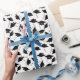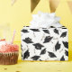Des capuchons noirs jetés dans l'air font un design sympa sur ce papier d'emballage de graduation pour un lycée noir et blanc ou une fête de fin d'études supérieures. La graduation noire se capte sur un arrière - plan blanc.