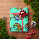Papier Cadeau CASQUETTES ELF, SHAMROCK, FEATHES DIAMONDES, Aqua