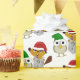 Papier Cadeau Castor et hibou avec casquette de Noël