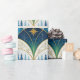 An abstract blue and gold pattern depicting the forest and the night sky in a pattern of Art Deco arches
