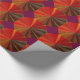 Ce papier d'emballage saisissant présente un motif extensible d'un design abstrait géométrique décoratif. Les couleurs brillantes du rouge, de l'orange, de l'or, du brun, du jaune, du marron et du vert convergent au centre dans un motif vortex. Le cercle central a des triangles répétitifs ressemblant à des textures tissées diverses.