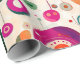 Des formes arrondies et colorées d'orange, turquoise, fuchsia et rose clair et vert créent un design amusant et moderne style livre de contes qui est délicieux pour envelopper des cadeaux pour Noël et d'autres occasions amusantes!
