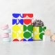 Ce papier d'emballage a une conception Bauhaus de cercles et de demi-cycles répétitifs en rouge, vert, bleu et jaune. Comme ce design mais veulent des couleurs différentes ? Message-moi.