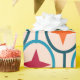 Ce papier d'emballage a un design moderne du milieu du siècle de cercles turquoises enfilés avec des étoiles à l'intérieur de chaque dans des couleurs rétro.
