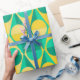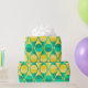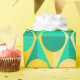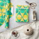 Ce papier d'emballage a un design art déco de cercles jaunes et verts à deux tons à l'intérieur de triangles jaunes et verts à deux tons.