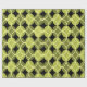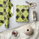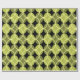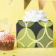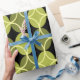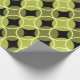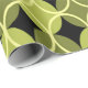 Ce papier d'emballage a un design moderne du milieu du siècle de cercles ouverts sur cercles fermés dans les tons vert et jaune sur un champ de noir. Cela pourrait être bon pour un cadeau de Fête des pères.