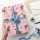 Papier Cadeau Cerf de saut rose et feuilles