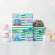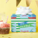 Ce document d'emballage cadeau de baby shower comporte un thème nautique. Un arrière - plan des rayures horizontales vertes et blanches est accentué avec des drapeaux de ondulation verts et bleus et un voilier mignon. Le texte sur les drapeaux lit : Oh ! C'est un garçon ! Le texte personnalisable vous permet d'ajouter le nom de la mère.