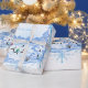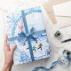 Cette image est conçue avec un flocon de neige bleu et blanc et au centre est un étang de patinage sur glace entouré d'arbres décorés de neige. Les maisons sont vues en arrière-plan. Les enfants profitent d'une journée sur l'étang. Cette saison est imprimée sur les côtés du papier. Un dossier bleu ou blanc est disponible. Ce papier d'emballage est disponible en styles assortis. Customisez à votre goût.