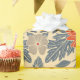 Cette enveloppe cadeau présente des fleurs et des feuilles dans les tons jaune, orange et gris-bleu sur un arrière - plan crème.