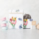 Ce joli enveloppement cadeau pour anniversaires, baby showers, 1er anniversaire de naissance, et d'autres événements spéciaux dispose d'un arrière - plan blanc classique avec de jolies fleurs printanières aquarelles, tulipes dans un vase en verre, et fleurs sauvages doux dans une baignoire en acier. Si frais et joli pour le printemps.