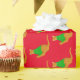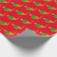 Enveloppement cadeau de Noël rouge amusant. Chats gingembre mignons en sauteurs verts de Noël, sur un arrière - plan rouge.
