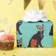 Un chat noir avec le jour du maquillage du crâne de sucre mort sur fond de turquoise