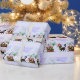 Cadeau de Noël mignon pour l'amoureux des chats ou le propriétaire de félin montrant un chat de dessin animé avec chapeau de Père Noël et col ruban vert avec cloches de Noël tirant un traîneau avec des chatons mignons sur un arrière - plan chargé d'arbre de Noël. Certaines parties de l'image utilisées © Graphics Factory.com. sgb01