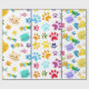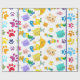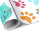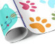 Un motif de dessins animés dynamique et ludique avec un éventail de visages de chat colorés, d'empreintes de pattes et d'éléments de texte ludiques. Les visages du chat sont représentés dans différentes couleurs, comme le jaune, le bleu, le violet et la pêche, chacune avec des expressions et des caractéristiques distinctes comme les whiskies, les yeux ronds et les petits nez. Les visages du chat sont entrecoupés d'empreintes de pattes dans un arc-en-ciel de couleurs comme le bleu, l'orange, le rouge, le violet et le vert, ajoutant à la nature fantaisiste du design. Les mots "MEOW!" et "PURRR" sont éparpillés dans tout le motif en caractères gras et caricaturaux, rehaussant le thème globalement ludique. L'arrière - plan est un blanc propre, qui permet aux éléments colorés de pop et crée une expérience visuelle joyeuse et engageante.