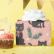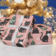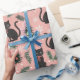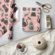 Les chats de Noël adorables fêtent la fête avec vous sur ce rouleau de papier d'emballage de vacances. Les chattes amusantes, surtout noires, s'amusent entre les arbres verts décorés, les branches à feuillage persistant et les flocons de neige blancs sur un arrière - plan rose. Whimsy d'une illustration rétro pour votre emballage cadeau pour les amoureux de les chats de votre liste de vacances d'hiver.