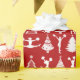 Papier d'emballage de Noël orienté cheerleading ou de pom d'amusement avec un arrière - plan rouge de fête et des arbres de Noël et des silhouettes alternatifs d'acclamation/pom ! Faites aux vacances plus d'amusement pour votre pom-pom girl ou fille de pom !