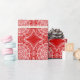 Ce mandala blanc est assis sur un arrière - plan rouge vif. La couleur est énergique et chaude. Une partie de la collection Hyil Mandala.
