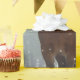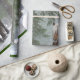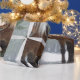 Papier à envelopper avec une photo d'un cheval brun avec une longue crinière blanche. Debout dans une forêt avec des flocons de neige qui tombent tout autour.
