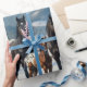 Papier Cadeau Chevaux Appaloosa noirs sur une ferme en hiver