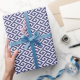 Papier Cadeau Chic bleu grec clé motif géométrique monogramme