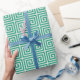 Papier Cadeau Chic vert grec clé motif géométrique monogramme