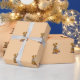 Un design enchanteur pour ajouter la touche finale à votre cadeau avec ce merveilleux chien de Noël assis emmêlé dans les guirlandes lumineuses entre les boules.