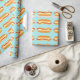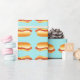 Ce papier d'emballage présente une délicieuse illustration de dessin animé d'une collation pour hot dog. Le hot dog a un bon petit pain et il y a du ketchup et de la moutarde au-dessus de la saucisse.