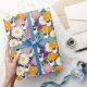 Papier Cadeau Chien de Corgi aux fleurs pourpre à motif