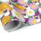 Ajoutez une touche de beauté aux cadeaux avec ce papier d'emballage qui présente des illustrations de style rapproché d'un corgi chiens fleurs et des graphiques floraux vibrants en blanc, jaune, vert, orange et lavande contre un arrière - plan violet.