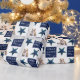 Cute Chien Chiot Pet Pet Photo Festive Star Christmas Wrapping Papier. Belle et festive étoile bleue. Joyeux Blanc, Joyeux, Jolly typographie. Le design a une photo personnalisée d'un chiot de chien - insérez votre chien préféré ou toute autre photo d'animal de compagnie dans le modèle et faites votre papier de Noël personnel unique.
