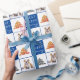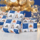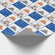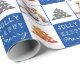 Cute Dog Pet Typographie Arbre de Noël Papier d'enveloppement de photo. Arrière - plan bleu et blanc avec des flocons de neige et un arbre de Noël simple. Joyeux Blanc, Joyeux, Jolly typographie. Le design a une photo personnalisée d'un chiot de chien - insérez votre chien préféré ou toute autre photo d'animal de compagnie dans le modèle et faites votre cadeau de Noël personnel unique.